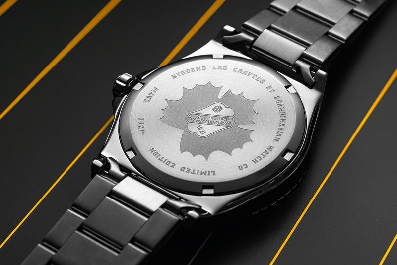 Det här är mer än ett armbandsur, det är en hyllning till vår historia, vårt klubbmärke och den stolthet som gjort oss till Bygdens lag. Varje detalj är noggrant framtagen. Tigerränderna återfinns diskret i bezeln. Klubbmärket framträder i en tydlig gravyr på bakboetten. På låset finns årtalet 1921 ingraverat, och på innerringen löper orden "Tillsammans jobbar, växer och vinner vi". Sekundvisaren i gult som bär våra färger vidare.